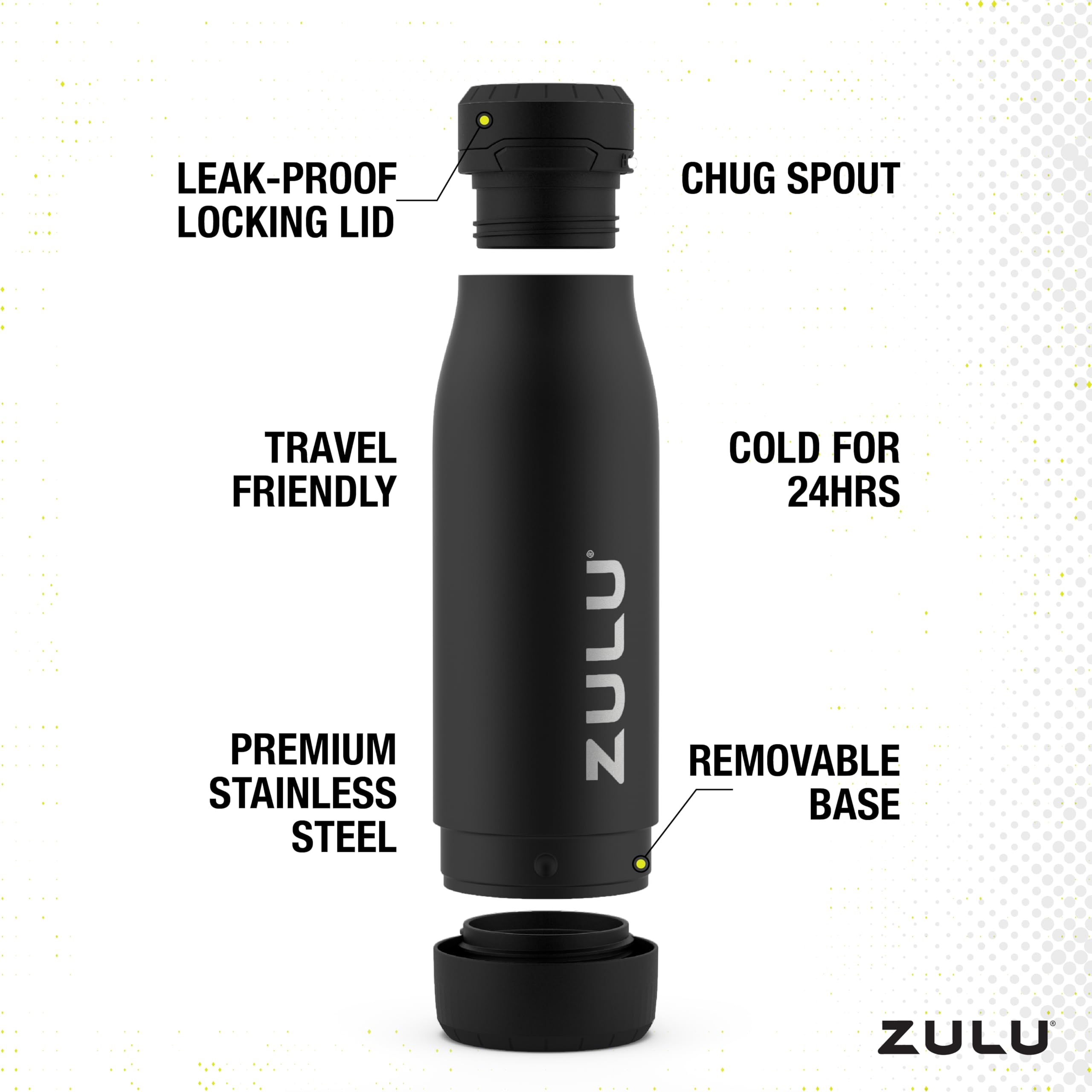 ZULU Ace Vacuum Insulated Stainless Steel Water Bottle with Chug Spout, Leak-Proof Locking Lid and Removable Base for School, Backpack, Sports, Gym, Travel